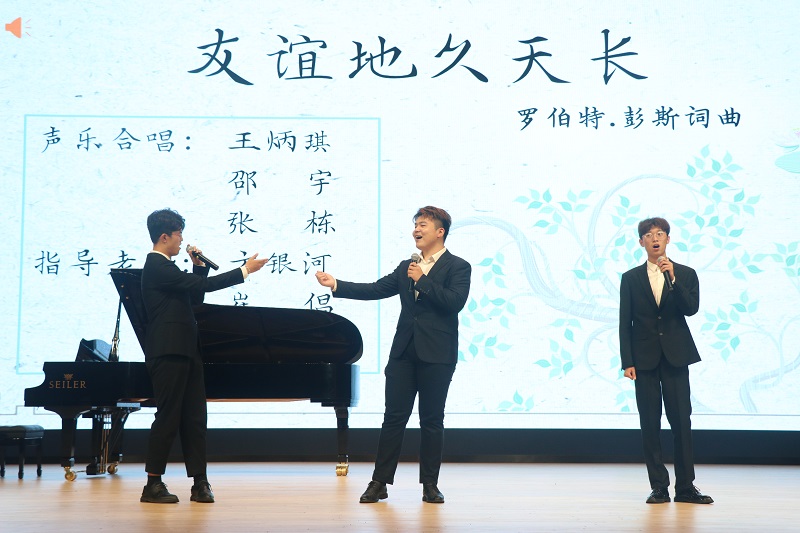 音乐会在一首旋律优美的男生重唱《友谊天长地久》中缓缓展开,温柔动情的歌声像故事般向观众娓娓道来,朋友是我们一生重要的财富,相逢即是缘分,让我们伸出热情的手,以真诚的心携手走过风雨坎坷;琵琶独奏《阳春白雪》用清新质朴而丰富的音乐语言,演奏出了人们积极进取、乐观向上,对大自然充满无限感情的精神气质;琵琶独奏《新翻羽调绿腰》乐曲清丽委婉、优美流畅、颇具古风,演奏出了舞女轻盈的舞姿;长笛重奏《泰勒曼双长笛第2号D大调奏鸣曲》清晰的织体、通透的音色和稳定的节奏,曲调流畅甘美﹐结构清晰明快,让人不禁随着旋律想要翩翩起舞;女高音合唱《渔光曲》以凄怨哀伤的旋律,深情地唱出了旧时代东海渔民艰辛劳动、困顿生活的愁苦心情,绘声绘色地渲染了“鱼儿难捕租税重,捕鱼人儿世世穷”的主题;琵琶独奏《浏阳河》保留了原曲的歌唱性旋律,同时又运用了琵琶代表性的推、拉、划音、轮等技法,突出旋律的婉转,似描绘一幅浏阳河开阔大气的河面风光,借景抒怀;钢琴独奏《贝多芬钢琴小品op.119 no.1》是贝多芬晚期的作品,音乐律动返璞归真,流露出作曲家内心的声音,弹出音乐的优雅高贵而哀伤的感觉,从指间流露出音乐的优雅;女高音独唱《雁南飞》唱出了抗战年代恋人在分别时的那种难以言说的别离之情和不得已的分别之痛,歌曲以情动人,旋律优美,让观众听后流连忘返,念念不忘;吉他演奏《绿袖子》演奏出少年对爱情的向往,也有失去爱情后的淡淡惆怅,不同于金属琴弦的清脆响亮,尼龙琴弦有一种无法形容的荡气回肠,在夜色中极其勾魂;女声独唱《刻在我心底的名字》抒情清甜的嗓音唱出那个刻在心底的名字,明明可以只是一个普通称谓,可因为与你的联结,从此变成余生解除不了的魔咒;女生重唱《在水一方》曲调温婉动人,极富东方主义色彩的浪漫情怀,歌词情真意切,令人充满了无限遐思,嗓音柔情似水,真挚动人,再加上音色与词曲完美结合,塑造了流水般的意境之美,让人回味悠长;女声独唱《我爱你,中国》歌词一咏三叹,字句凝练,运用叠句、排比等对祖国的春苗秋果、森林山川、田园庄稼等作了形象的描绘和细腻的刻画,演唱出海外游子对祖国的满腔炽热和真挚的爱国主义情感;女声独唱《不幸的人生》这首歌唱出了失去往日美好回忆的年轻女子在遭受背信弃义时痛彻心肺的哭喊,是对不幸的人生经历和上天对她不公正待遇的深刻控诉,演唱者唱出了主人公痛苦无助的情感;竹笛独奏《今昔》曲调运用江南丝竹常见的加花手法,连续十六分音符表现了流畅、欢快的色彩,演奏出新中国人民对幸福生活的赞美。