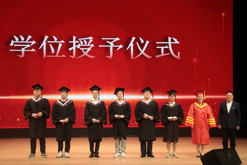 诗朗诵《青春万岁之歌》展现青春肆意飞扬,热爱经久不息,希冀毕业生无论身处何方,都要带着微笑与努力,定能绽放光彩。男高音独唱《我怎样去爱你》用高昂的歌声唱出了炙热的爱意。在与毕业生交换礼物后,熊祖鹏院长为2022届毕业生寄语,希望全体毕业生不忘艺术初心,珍惜与音乐的缘分,从成长中培养能力、锤炼性格,从经历中碰撞思想、启迪心智;不要放弃对知识的渴求,不要停止对梦想的坚持,把挫折和低谷当作积蓄力量的必要锤炼,为艺术能充分发挥其“载道”和“美育”的人文价值而努力;希望各位毕业生带着国产探花 的殷殷期盼,乘风破浪,向阳而生。在学位授予仪式上,国产探花 党委常委、副校长黄海燕为每一位毕业生拨正流苏、授予学位。