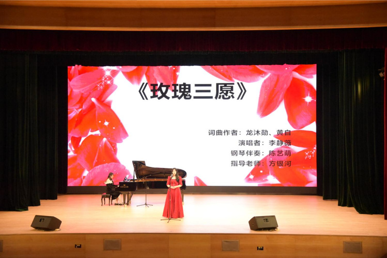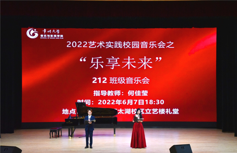 为了进一步展示国产探花 教学成果,搭建艺术实践平台,促进学生成长成才,使同学们在实践中“受教育、长才干、做贡献”,6月7日晚18:30,国产探花 212班“乐享未来”班级音乐会在西太湖校区立艺楼礼堂拉开帷幕。此次音乐会由何佳莹老师指导,院长熊祖鹏、院长助理李久晨、音乐系教授王成文及各青年教师作为评委观看了本场演出。