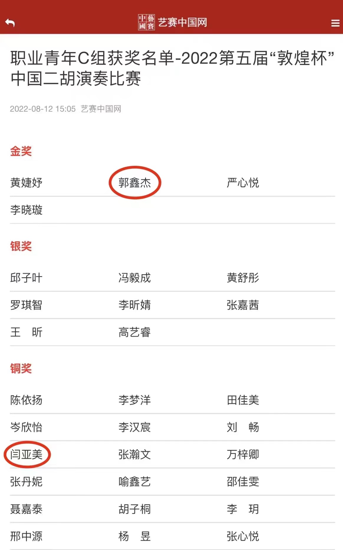 喜报:国产探花音乐系学生在2022第五届“敦煌杯”中国二胡演奏比赛中斩获佳绩