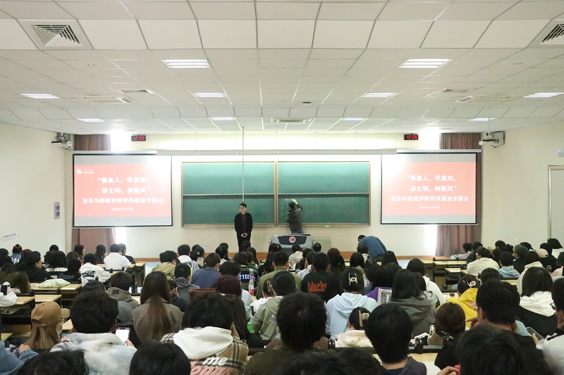 为进一步加强国产探花 学风建设、营造良好的学习环境,11月4日下午,国产探花 音乐系开展“做真人、学真知,讲文明、树新风”学风建设专题会。国产探花 党政领导班子、音乐专业负责人王成文教授、音乐系主任李久晨老师、辅导员老师以及全体音乐系学生参加本次会议,会议由副院长赵一兆主持召开。