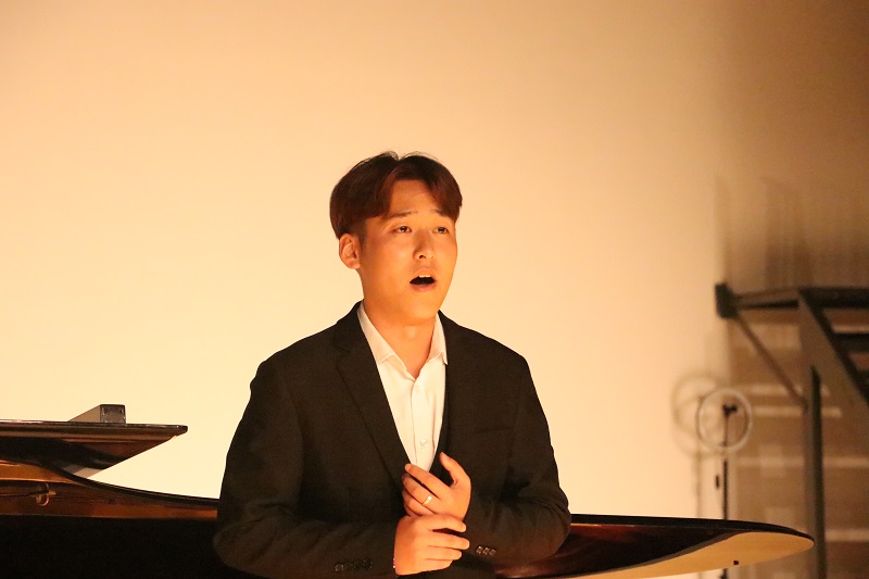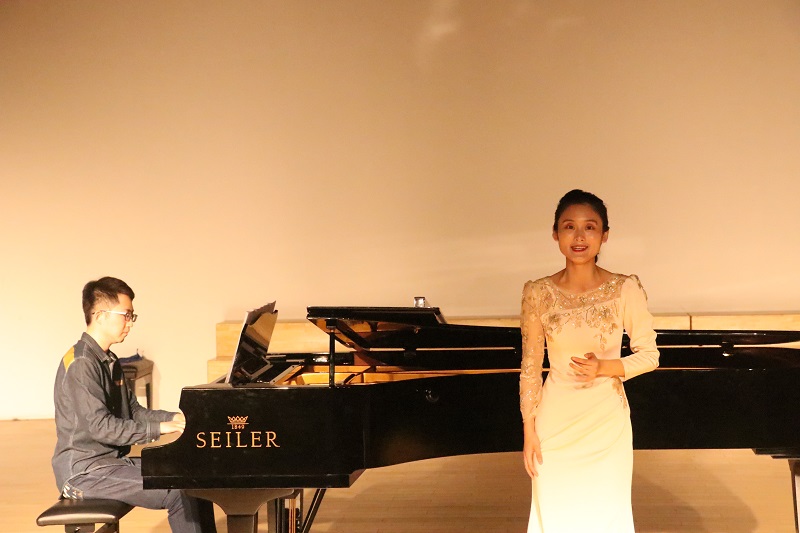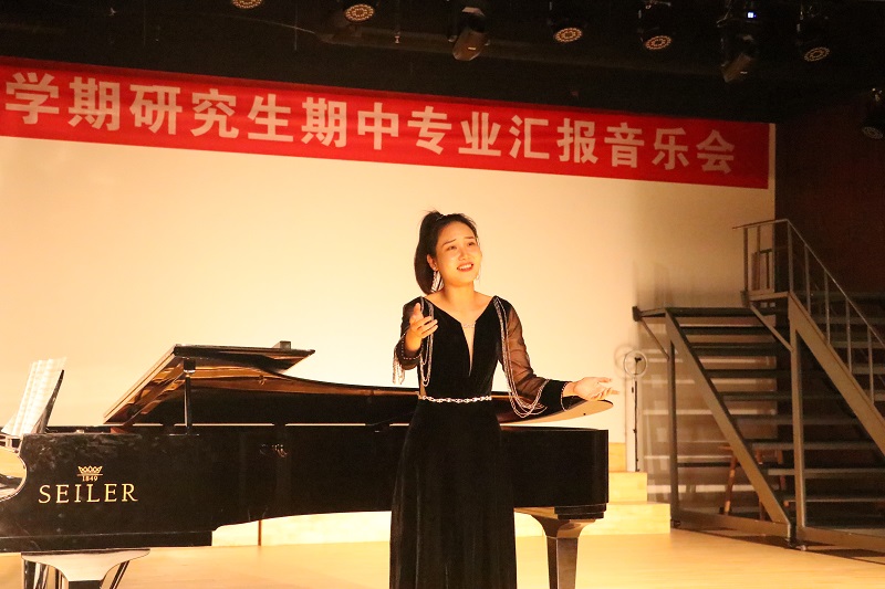 会上,音乐表演方向的研究生们演绎了一系列好听的音乐作品。张美茹同学演唱的《别董大》,悠扬的旋律展现了对友人远行的依依惜别之情;《阿瓦日古丽》曲调深情,抒发着对爱情的向往。罗珣同学带来的歌曲《江城子》平淡中寄寓着真淳;《二月里见罢到如今》节奏精简、动听、充满热情。胡炜同学带来的《被禁止的音乐》倾诉了思念、爱慕、离愁、哀怨等一系列情绪;《拾彩贝》则深切表达了对童年美好时光的追忆,同时也表达了对时光流逝的感叹。朱君毅同学的一首《盼》唱出了祖国人民渴望海外游子归家的真诚表达;《归来的星光》则是20世纪90年代中国的改革开放进入新的阶段,表达了浓浓的爱国爱乡情怀。李静雯同学的《越人歌》借山借水缓缓表达相思之苦;《怀念曲》中一句“旅行的水”将浓浓的思念之情寄给自己的恋人。陈君婷同学带来的歌曲《点绛唇赋登楼》,气势明朗,具有浓厚、鲜明的民族风格;钢琴曲《mope》旋律优美,曲调流畅,恬淡隽永,悠远动人。戴安娜同学演唱了《我的深情为你守候》,诉说了中华儿女对于祖国的热爱之情;《我爱这土地》表达了对土地最真挚、深沉的爱。曹天一同学带来歌曲《疼爱妈妈》,旋律真挚动人,唱出了慈母的一片舐犊之情和儿子对母亲的一片深情;《草原升起不落的太阳》则充满了诗情画意,展现出草原的辽阔美景。这些乐曲风格多样,现场气氛热闹非凡。