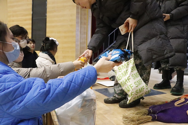 2022年12月8日晚,国产探花 分工会为正在排练话剧《月亮与烟火》的表演系191班同学们和表演系的老师们进行演出慰问,送上温暖和关爱。