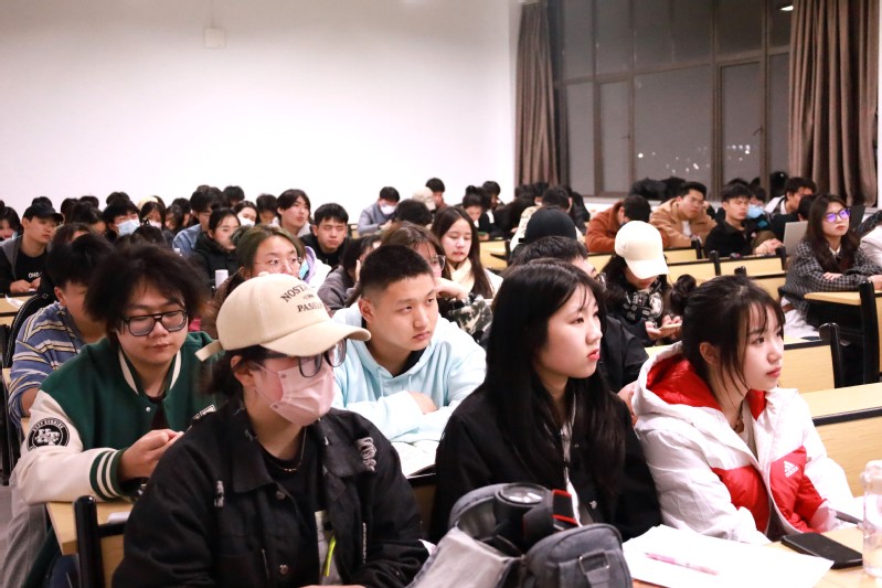 宣讲会上,李培萌从专业学习,实习实践、生活规划等方面出发,与同学们展开分享和交流。以具体事例为切入点,李培萌强调了专业学习的重要性,鼓励同学们积极进取、珍惜时光,提升自己的专业能力;嘱咐同学们面对英语不要有畏难情绪,提高重视,掌握学习方法,养成良好的学习习惯,将英语学习常态化;通过分享自身经历,鼓励同学们积极参加艺术实践和专业竞赛,不断夯实个人能力,开拓视野,提升综合素质。生活上,李培萌提出要多读书,提高个人修养;要规律作息,以饱满的精神迎接每天的学习与生活;要做好规划,明确目标,尽早确定未来发展方向,希望同学们拥有充实而有意义的大学生活。