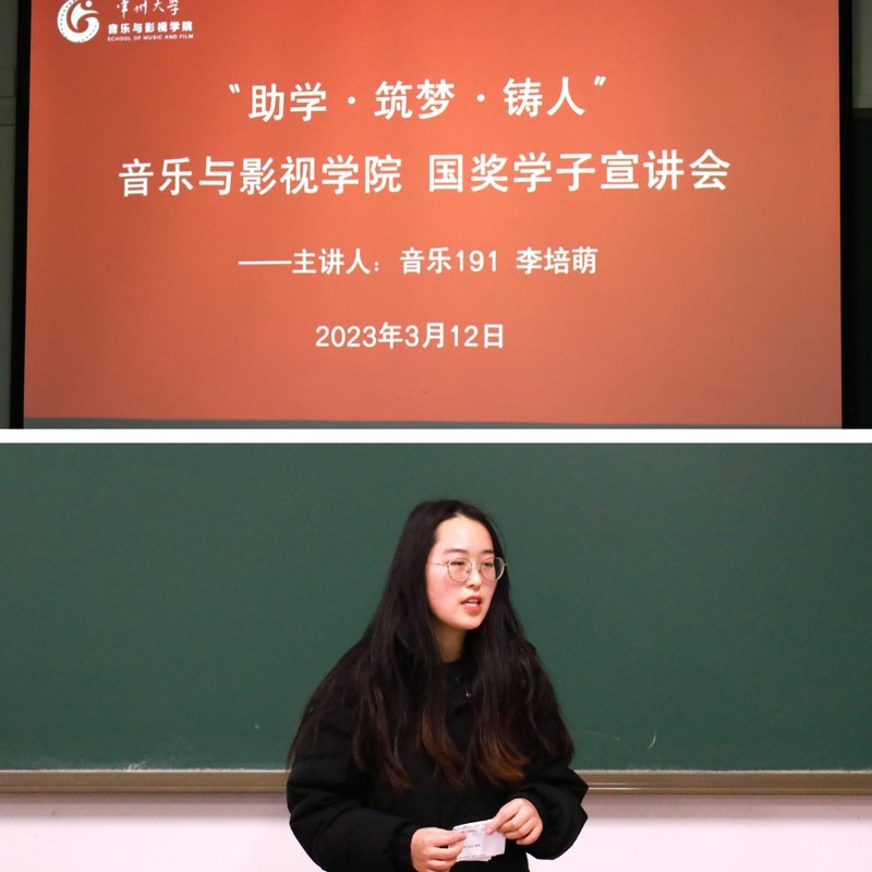 为了增强国产探花 资助育人工作实效,营造创先争优的学习风气,我院于3月12日晚在立德楼216开展了“助学•筑梦•铸人”国奖学子宣讲活动,2022学年国家奖学金获得者——音乐191班李培萌作为主讲,与大一新生进行了亲切交流。