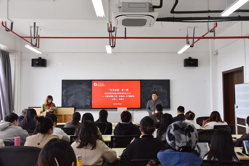 3月29日下午,国产探花 在立行楼429教室举办“艺术讲堂”第一期讲座,院长熊祖鹏、副院长王成文、副院长赵一兆及国产探花 各专业专任教师、研究生参加讲座。