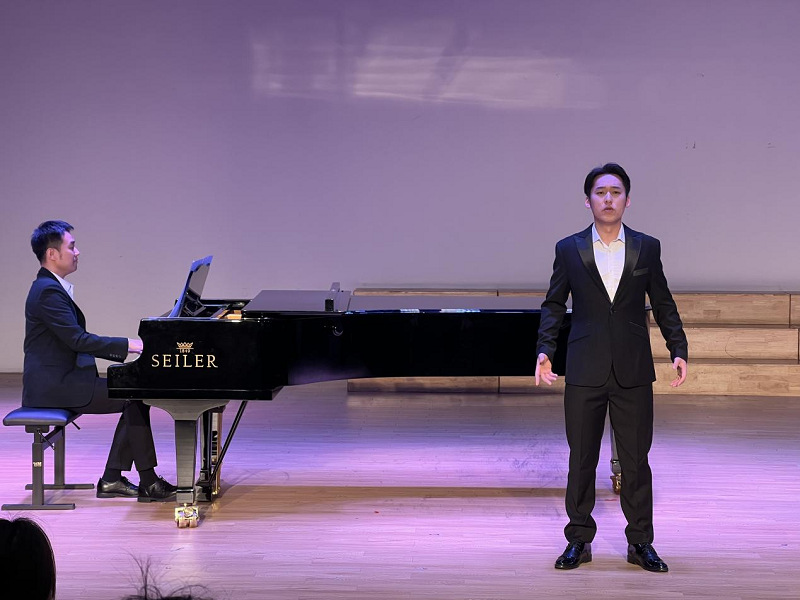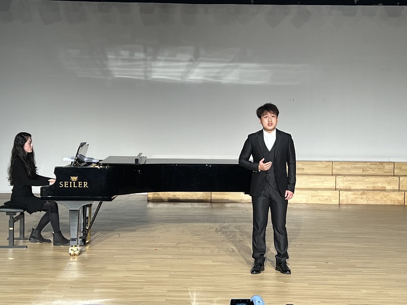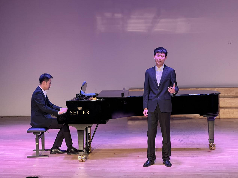 音乐会上,曹天一等七名同学演唱了一系列经典曲目,陈雅馨等老师进行钢琴艺术指导。