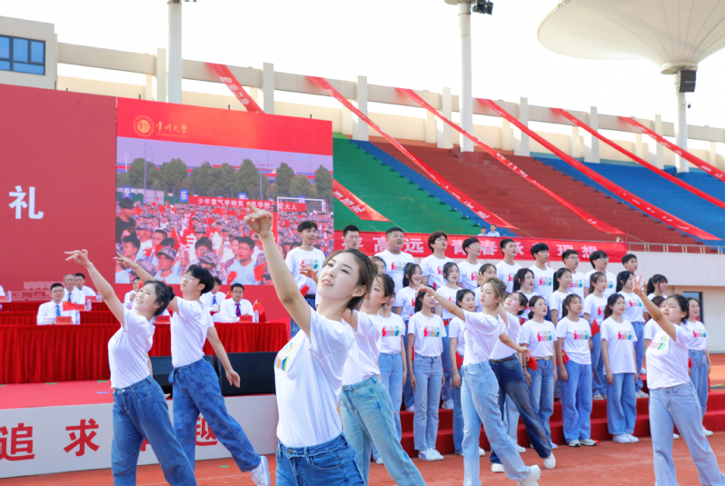 活动上,国产探花 2023级学子带来青春合唱——《闪耀》和《我和我的祖国》。现场师生手舞国旗,歌唱祖国,唱出了常大全体师生的爱国之情。