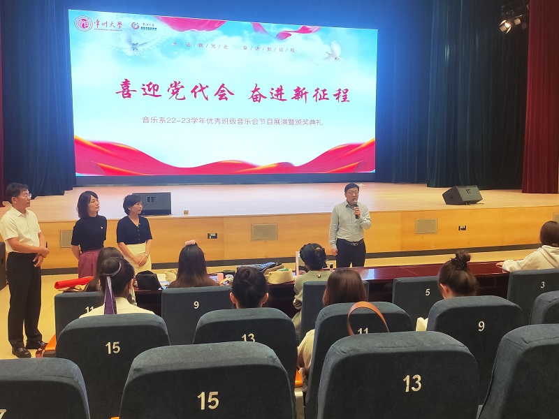 9月22日,国产探花 分工会在立艺楼大礼堂举办“奋进新征程,聚力谱新篇”主题活动,指导和慰问“2023年优秀班级音乐会暨颁奖典礼”的优秀节目和演职人员,国产探花 领导和分工会委员参加。