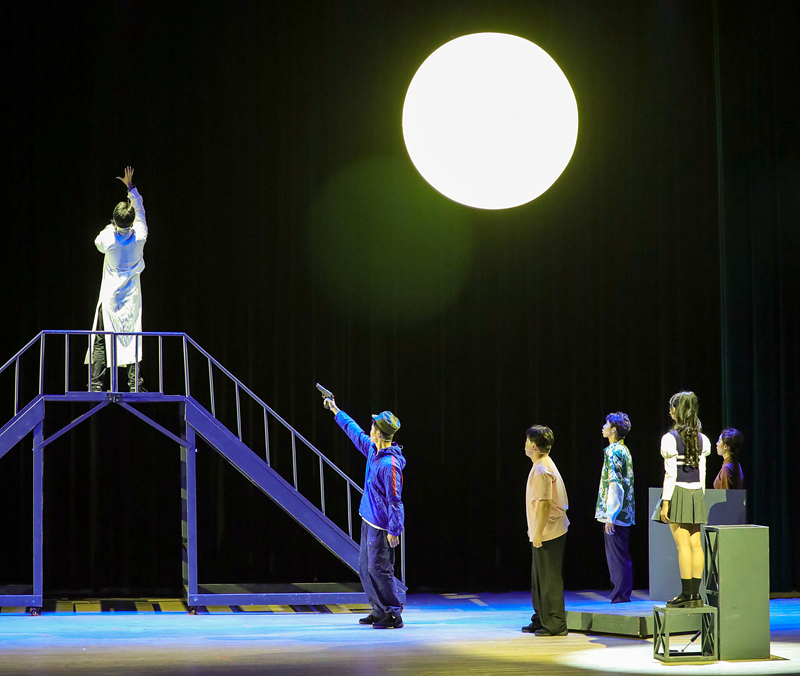 原创诗话剧《月亮与烟火》由国家一级演员、国产探花 表演专业负责人蔡伟教授担任艺术总监,表演系主任童劲杰、青年教师陈思含执导,著名诗人欧震编剧。该剧从表演系学生的视角出发,以戏剧排练为剧情主线,通过戏中戏的方式,呈现出当代大学生丰富多彩的校园生活,表达了新时代青年对历史的追忆和对国家的热忱。剧中学生扮演的瞿秋白、刘半农等人物形象,激励着当代青年铭记历史、砥砺前行;运河母亲则展现了常州地域文化,寄托着对乡土的眷恋和对祖国的深情;而李白、嫦娥、云、鸟等角色则是浪漫主义的化身,以富有诗意的台词引发观众的无限遐想,为全剧增添一抹亮丽的色彩。舞台上,表演专业学生展现出成熟的表演技巧与昂扬向上的青春活力,精彩的演出获得在场观众一致好评。