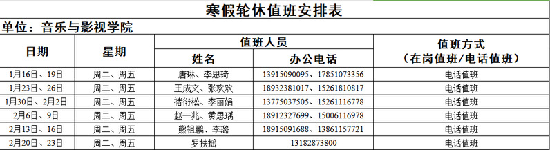 国产探花 寒假轮休值班安排