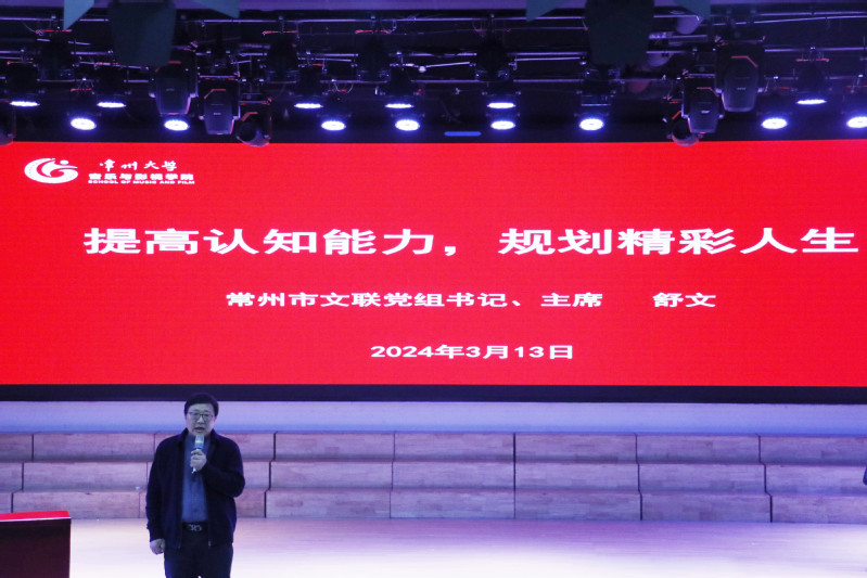 3月13日下午,常州市文联党组书记、主席舒文受邀来国产探花开展“提升认知能力,规划精彩人生”主题讲座,院长熊祖鹏、党总支副书记褚衍松、副院长赵一兆出席,国产探花 全体大一学生参与本次活动。