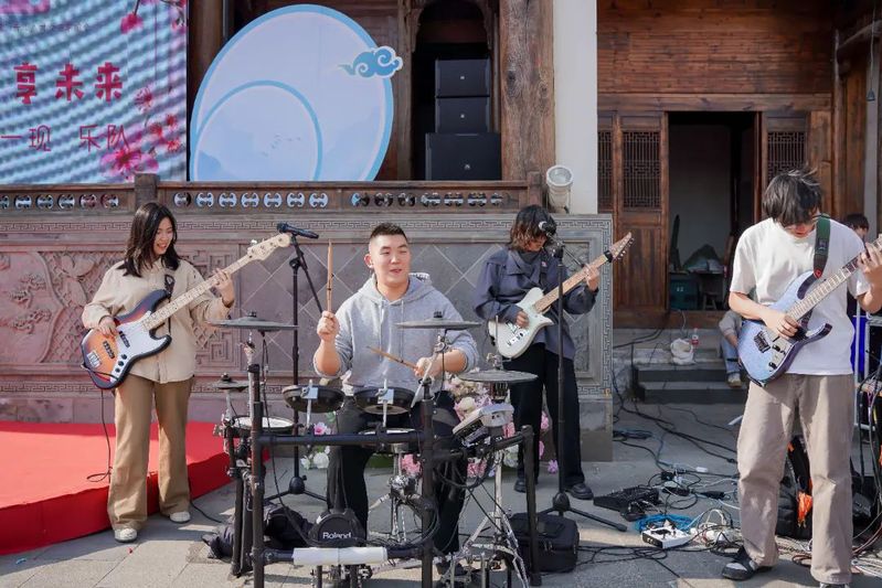 古戏台前,“春日邂逅 爱在花朝”——“两湖”青年人才交流联谊会热火朝天。来自国产探花 的Last briefly 昙花一现”乐队、“不规则变量乐队”乐队上演了一堂别具一格的美育课堂。歌声婉转,曲声悠扬,鼓声激荡,为现场观众带来《空》《山海》《我的未来式》等脍炙人口的歌曲,沉浸的演出赢得场下观众的欢呼与掌声。