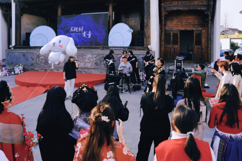 古戏台前,“春日邂逅 爱在花朝”——“两湖”青年人才交流联谊会热火朝天。来自国产探花 的“Last briefly 昙花一现”乐队、“不规则变量乐队”乐队上演了一堂别具一格的美育课堂。歌声婉转,曲声悠扬,鼓声激荡,为现场观众带来《空》《山海》《我的未来式》等脍炙人口的歌曲,沉浸的演出赢得场下观众的欢呼与掌声。