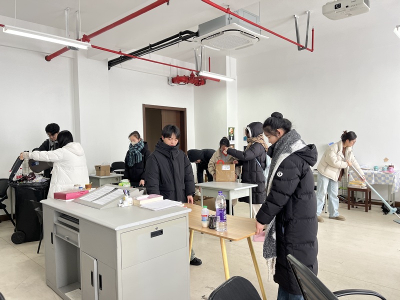 在支部书记李思琦的带领下,志愿者们各自分配好区域,干劲十足地开始工作:地面卫生的清扫、考研书籍的整理、课桌讲台的擦拭清洁、慰问物资的准备......大家将考研教室打扫的焕然一新。