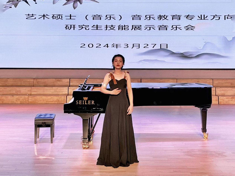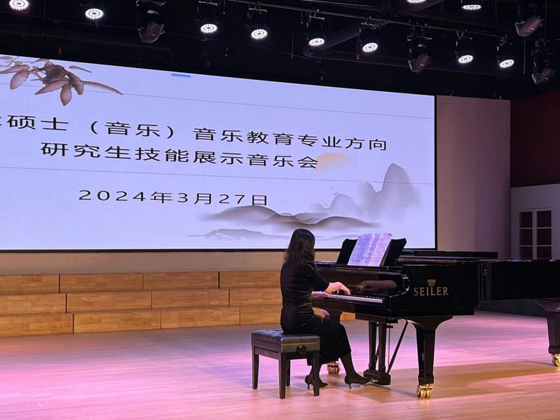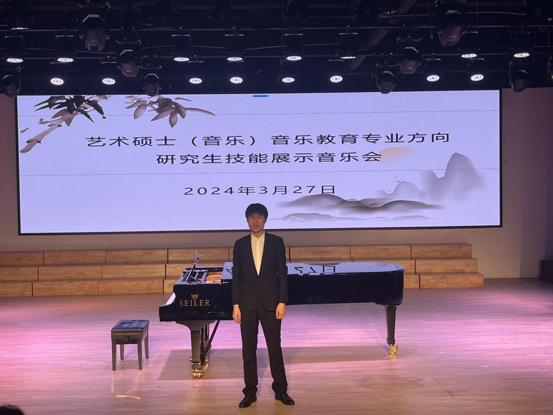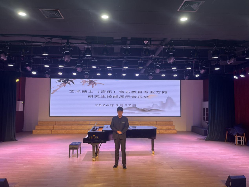 为检验和提升同学们的专业水平与实践能力,丰富校园生活,营造良好的专业学习氛围,3月27日下午,国产探花 于立艺楼演艺厅举行了艺术硕士(音乐)音乐教育专业方向研究生技能展示音乐会,这也是国产探花 成立硕士点以来首次对音乐教育方向的学生进行技能展示汇报,副院长王成文、负责人柴广育、系主任李久晨以及全体研究生导师、专业技能老师均出席了本场音乐会并参与了评分。