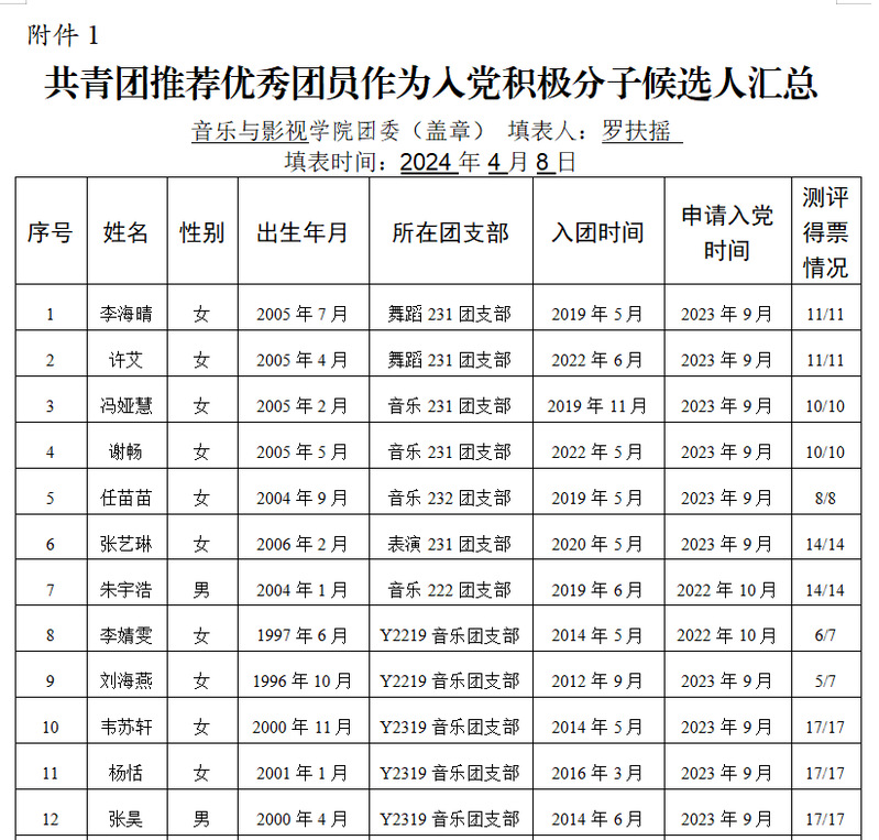 经本人申请、支部评议、国产探花 审核,拟推荐以下12名同学作为党的培养对象,现进行公示。公示期:2024年4月8日—4月10日,公示电话:院团委88519087。如有不同意见,可拨打上述电话至院团委(西太湖校区立行楼440)反映。