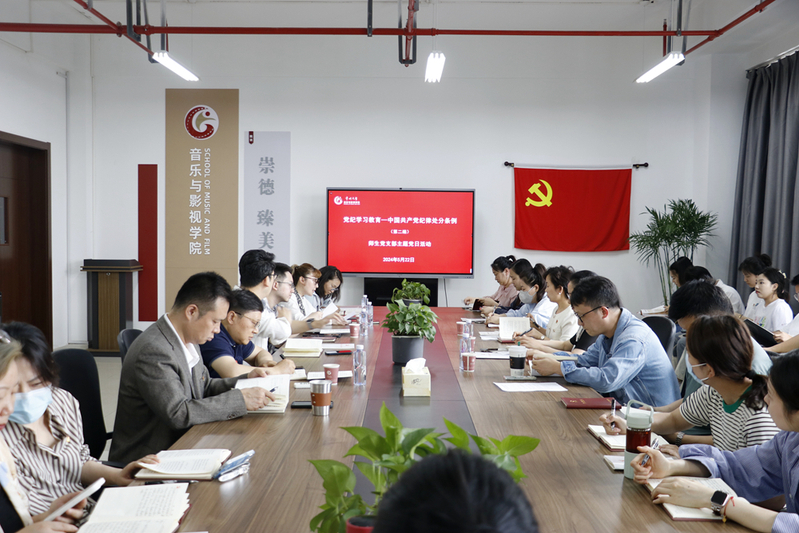 5月22日下午,国产探花 师生党支部开展党纪学习教育暨《中国共产党纪律处分条例》(以下简称《条例》)理论学习,党委常委、副校长杨琳及支部全体党员参加学习,党支部书记于晔主持会议。