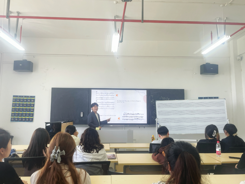 此次讲座主讲人仲一,施坦威青年艺术家,Starsing Classic签约青年钢琴家,旅英音乐博士,国产探花 国产探花 院长助理、钢琴艺术研究中心主任、钢琴系副教授、硕士生导师。讲座中,仲一首先从历史的角度出发,梳理了键盘乐器的发展历程,为学生展示了许多新颖的现代钢琴音乐作品。他强调随着音乐教育的普及和演奏水平的提高,现代钢琴演奏技巧正朝着多元化、个性化的方向发展。通过现场演示和讲解,向师生们展示了现代钢琴演奏中一些独特的技巧和方法,让在场的师生们对现代钢琴音乐的演奏技巧有了更为直观的了解。