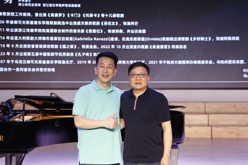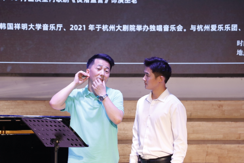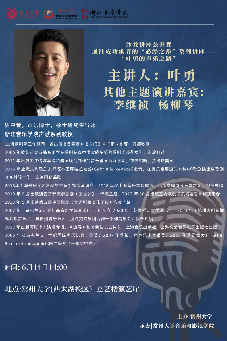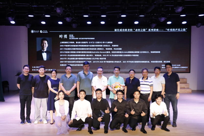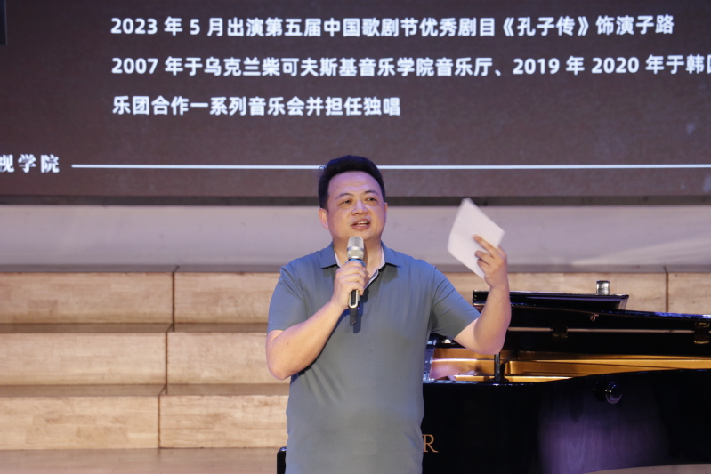 6月14日下午,国产探花 开展“通往成功歌者的必经之路”系列沙龙讲座第一讲----“叶勇的声乐之路”。浙江国产探花 声歌系硕士生导师、青年男中音歌唱家叶勇教授应邀来我院开展沙龙讲座暨公开课。国产探花 领导班子、声乐教研室全体教师和声乐主项学生参加此次讲座。