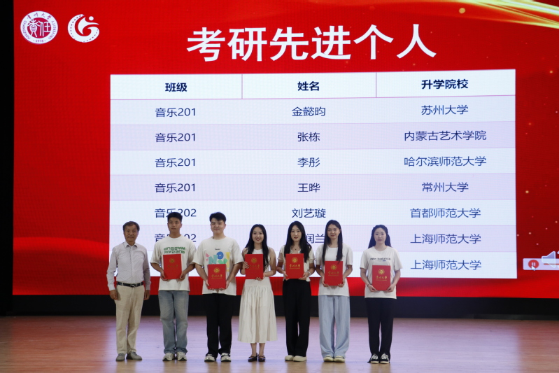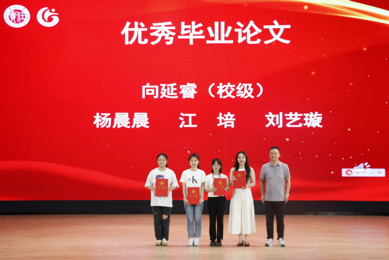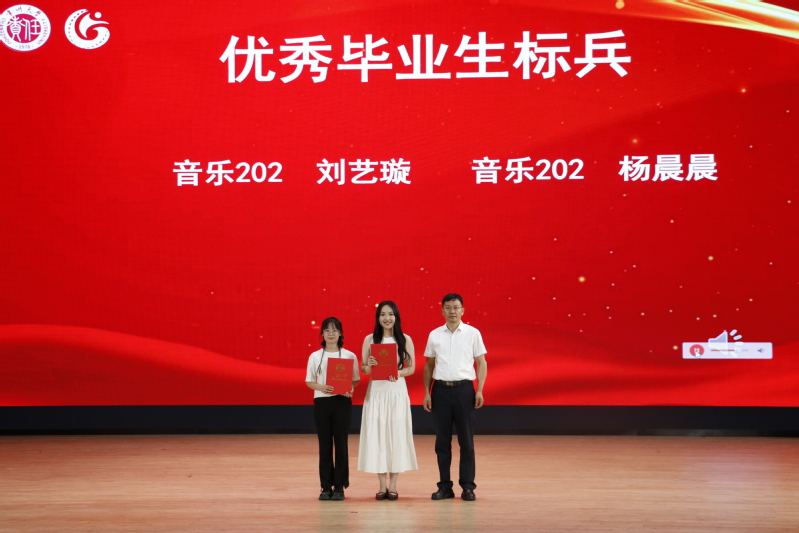 音乐202刘艺璇作为优秀毕业生代表发言,回顾了在常大成长的点点滴滴,呼吁在场的每⼀位同学都能秉持常⼤⼈“勇担责任,追求卓越”的精神,不忘初⼼、砥砺前⾏。表演系教师陈思含作为教师代表发言,叮嘱同学们要保持对专业的热心、对自己的信心和对未来的耐心,做不断努力的追寻者。在表彰环节,国产探花 为优秀毕业生标兵、优秀毕业生、考研先进个人、学科竞赛优秀个人、优秀毕业论文、毕业论文优秀指导教师、江苏建设卓越奖教金、江苏建设奖学金获得者颁奖,充分发挥榜样作用,激励国产探花 师生拼搏奋进,昂首向前。随后,院党总支书记唐琳上台与毕业生代表互赠礼物,副书记褚衍松为校友联络人颁发聘书。