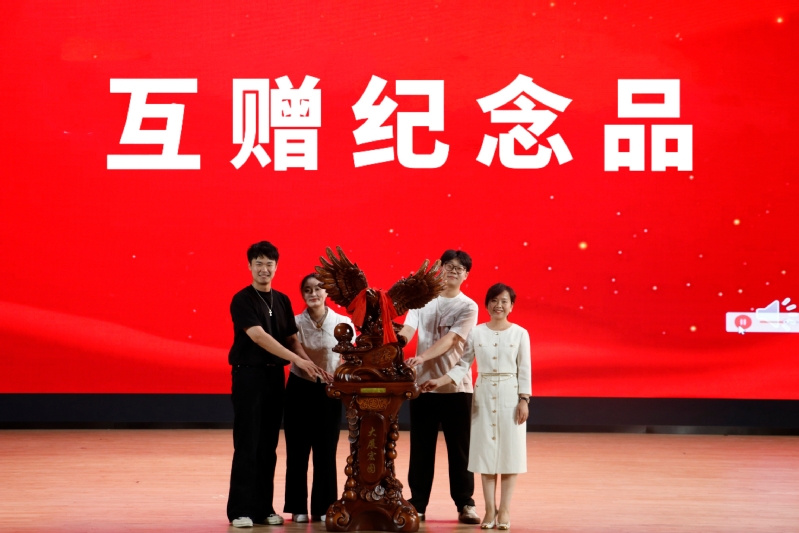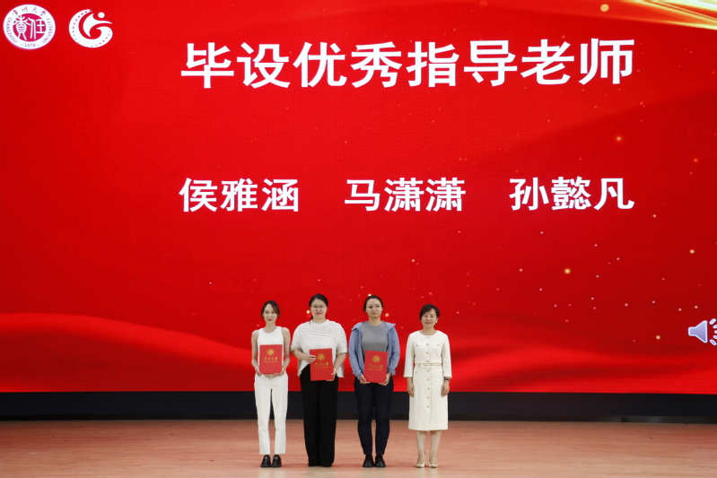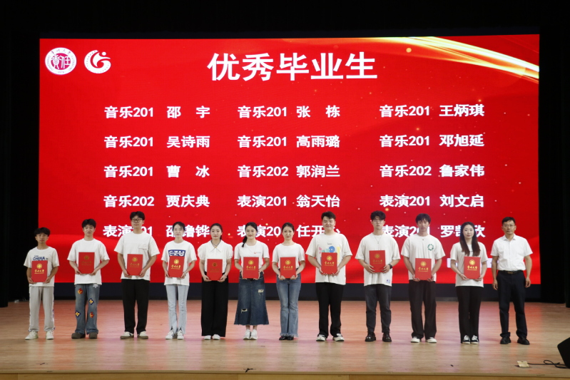 音乐202刘艺璇作为优秀毕业生代表发言,回顾了在常大成长的点点滴滴,呼吁在场的每⼀位同学都能秉持常⼤⼈“勇担责任,追求卓越”的精神,不忘初⼼、砥砺前⾏。表演系教师陈思含作为教师代表发言,叮嘱同学们要保持对专业的热心、对自己的信心和对未来的耐心,做不断努力的追寻者。在表彰环节,国产探花 为优秀毕业生标兵、优秀毕业生、考研先进个人、学科竞赛优秀个人、优秀毕业论文、毕业论文优秀指导教师、江苏建设卓越奖教金、江苏建设奖学金获得者颁奖,充分发挥榜样作用,激励国产探花 师生拼搏奋进,昂首向前。随后,院党总支书记唐琳上台与毕业生代表互赠礼物,副书记褚衍松为校友联络人颁发聘书。