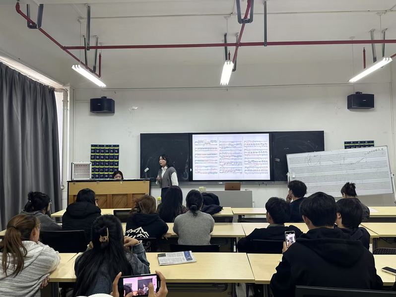 讲座中,陈雅馨以莱谢蒂茨基钢琴教学法的实践应用、钢琴协作艺术的合作要领为切入点,发言嘉宾高园以作曲家陆在易老师的声乐艺术歌曲作品为例,从作品曲式、织体和声等多方面展开分析,为在场师生全面系统梳理了钢琴演奏者的各项工作任务。同时,通过高园与国产探花两位研究生的现场配合,让在场师生更加直观、具体地感受到舞台表演时钢琴演奏者应注意的细节,为今后的实践奠定了扎实基础。