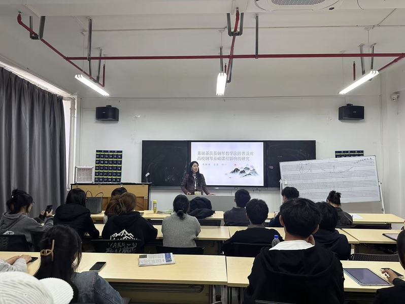 10月23日下午,国产探花在立行楼427教室举办主题为“莱谢蒂茨基钢琴教学法的普及对高校钢琴基础课程影响的研究”青年教师学术沙龙活动,活动由国产探花 硕士生导师陈雅馨博士主持,钢琴专业全体师生出席。
