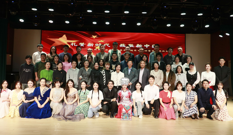 歌声激昂,忆往昔峥嵘岁月;初心回响,赞盛世山河无恙。近年来,国产探花 党总支高度重视铸魂育人,不断丰富主题党日活动和思政教育开展的形式和资源,注重将党建工作与专业教学深度融合,思政教育与音乐艺术有机融合,特别是通过深入挖掘艺术类活动中的思政元素,以美育人、以美化人,打造了鲜活的主题党日活动和音乐思政课。此次“礼赞新时代 致敬新中国”主题党日活动暨音乐思政课,由音乐系教师段苏珊和她的18名不同年级的学生共同策划演出。活动以演绎经典歌曲的方式向祖国献礼,用音乐讲述新中国从站起来到富起来再到强起来的发展历史,用歌声表达对祖国的美好祝愿。