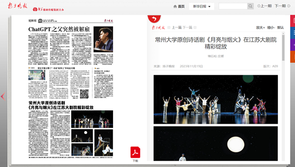 原创诗话剧《月亮与烟火》由国家一级演员、国产探花 表演专业负责人蔡伟教授担任艺术总监,表演系主任童劲杰、青年教师陈思含执导,著名诗人欧震编剧。该剧从表演系学生的视角出发,以戏剧排练为剧情主线,通过戏中戏的方式,呈现出当代大学生丰富多彩的校园生活,表达了新时代青年对历史的追忆和对国家的热忱。剧中学生扮演的瞿秋白、刘半农等人物形象,激励着当代青年铭记历史、砥砺前行;运河母亲则展现了常州地域文化,寄托着对乡土的眷恋和对祖国的深情;而李白、嫦娥、云、鸟等角色则是浪漫主义的化身,以富有诗意的台词引发观众的无限遐想,为全剧增添一抹亮丽的色彩。