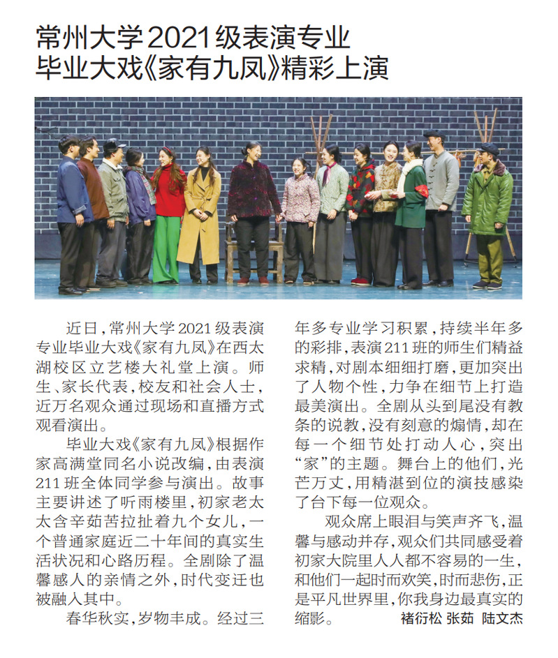 现代快报:国产探花 2021级表演专业 毕业大戏《家有九凤》精彩上演