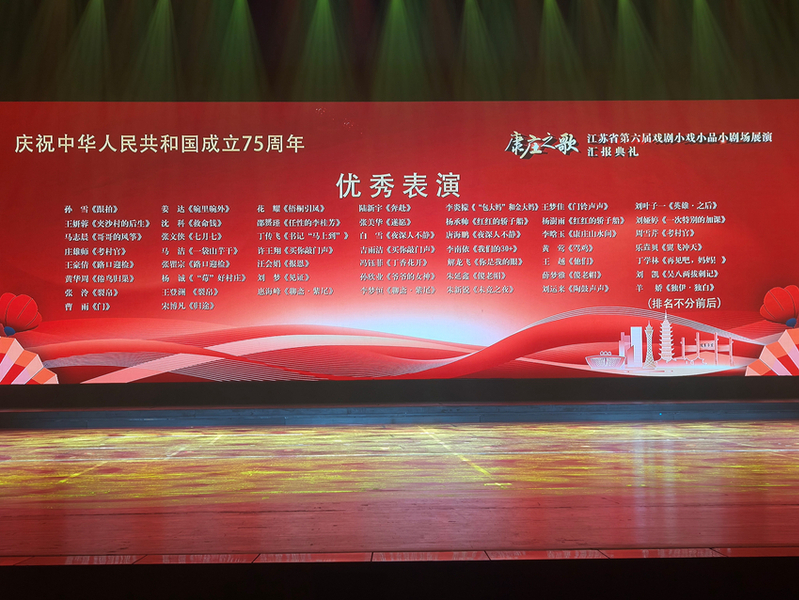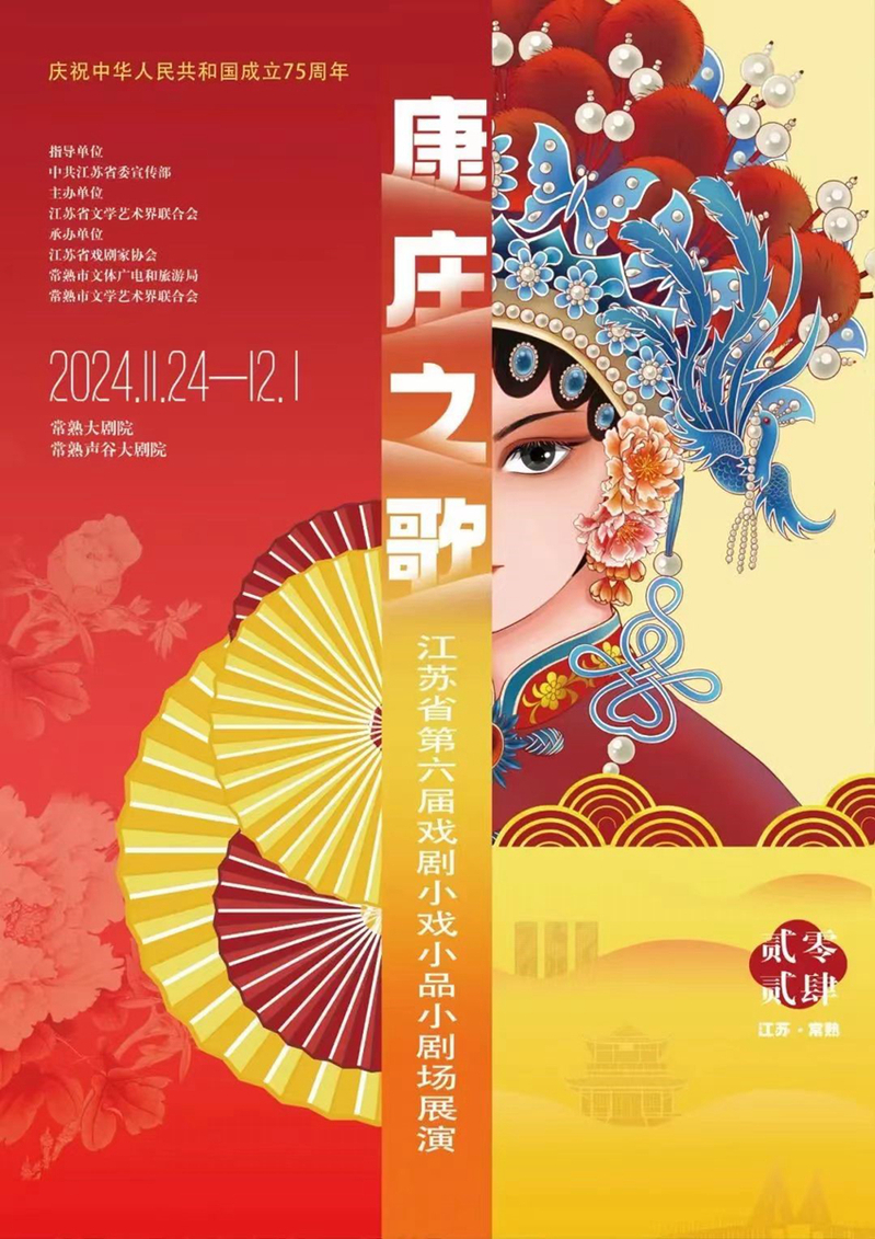 11月24日下午,“康庄之歌”江苏省第六届戏剧小戏小品小剧场展演(终评)在常熟大剧院拉开帷幕。本次活动由中共江苏省委宣传部指导,江苏省文学艺术界联合会主办,江苏省戏剧家协会、常熟市文体广电和旅游局、常熟市文学艺术界联合会承办。