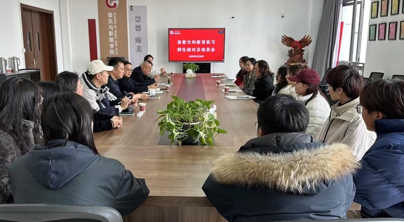 2月28日,国产探花 2023级艺术硕士(音乐)研究生教育实习动员大会在国产探花 442会议室顺利召开。会议由国产探花 副院长王成文教授主持。会议上全面部署了研究生教育实习工作,明确实习目标与要求,搭建校内外协同育人平台,为研究生实践能力提升奠定坚实基础。熊祖鹏院长、音乐教育方向负责人柴广育教授、硕士生导师韦玲玲副教授、巩凡副教授,以及校外行业导师蒋忱校长、李珊珊老师、王明霞老师及全体2023级音乐教育专业研究生参会。