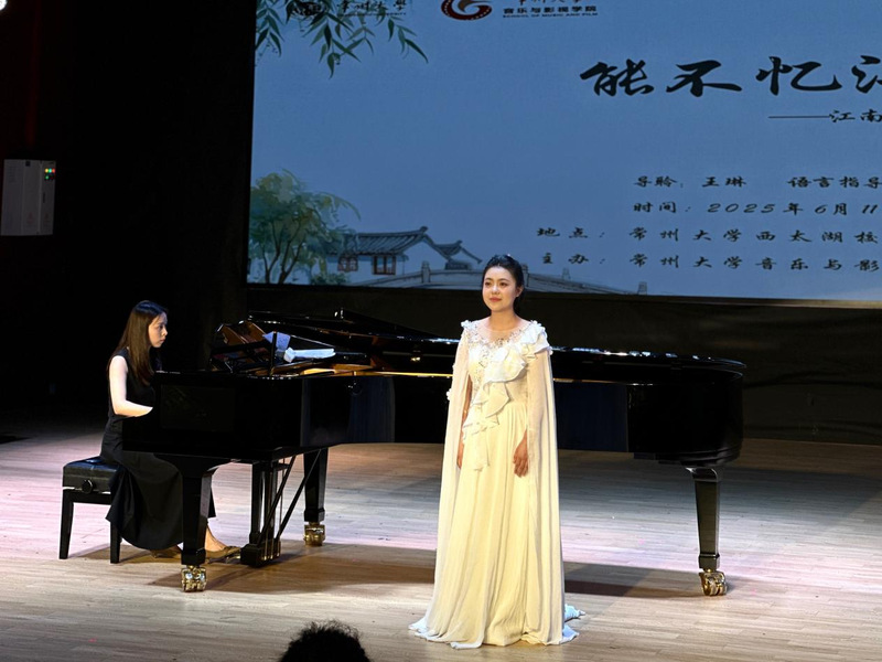 音乐会由王琳老师担任导聆,于晓晶老师进行语言指导,国产探花 2022级、2023级、2024级民族声乐表演方向的7位硕士研究生现场演绎了《无锡景》《四季歌》《紫竹调》《姑苏风光》等14首经典江南民歌。通过这些旋律,我们得以窥见江南水乡的自然风貌、风土人情以及世代相传的生活智慧与审美情趣。音乐会是国产探花 音乐硕士民族声乐方向教学成果的一次重要展示,同学们的精彩演绎,既是对传统民歌艺术的致敬,也是一次当代青年对本土文化的积极探索与再创造。