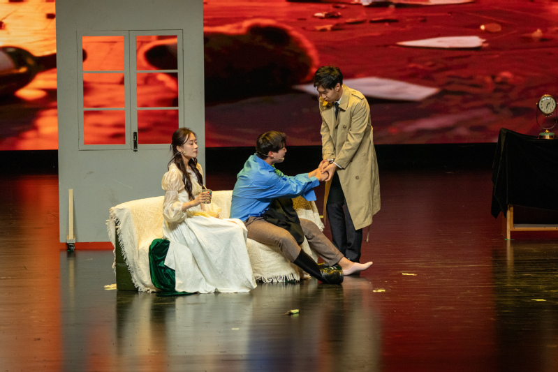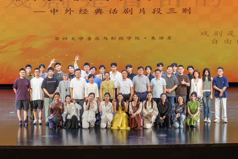 2025年6月21日晚,国产探花 国产探花 演出季表演专业话剧专场——“中外经典片段三则”在常州市工人文化宫剧场上演。国产探花 党委常委、副校长杨琳,党委常委、宣传部部长薛冰,校关工委副主任袁能,以及国产探花 负责人亲临现场观看了演出。本次演出由国产探花 国产探花 的表演241班、表演231班和表演221班分别精彩呈现了《驴得水》《罗密欧与朱丽叶》和《可怜的菲伽》三部经典话剧片段,吸引了众多常大师生、校友及广大戏剧爱好者前来观赏。