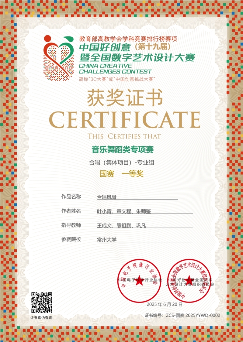 在此次赛事中,国产探花 师生积极参与合唱、声乐、舞蹈、歌曲创作等多个项目。经过激烈的角逐,一举斩获国赛一等奖3项:大合唱《风骨》、舞蹈(集体项目)《丰乐年》,以及与江苏理工国产探花 合作的声乐作品《感激》;此外,还荣获国赛三等奖5项,包括表演唱《不要怕》、小合唱《教我如何不想她》、歌曲创作《奔涌龙城》、舞蹈(个人项目)《秋》、舞蹈影像《日赴·复·富一日》,充分体现了创作的多元性。