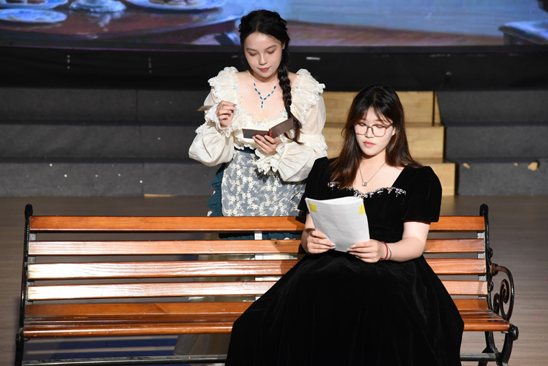 本场演出分为中、外经典歌剧两个部分展开,中国歌剧有《长征》《洪湖赤卫队》《沂蒙山》《运河谣》《伤逝》等剧目的经典唱段;外国歌剧则上演了《费加罗的婚礼》《茶花女》等经典桥段。无论是革命根据地的壮阔图景、方言韵律与抒情旋律的结合,还是古典歌剧的戏剧张力、宣叙调与咏叹调的转换,都很好地展示了同学们的演唱能力与表演功底,带给观众跨越语言与文化的艺术共鸣。