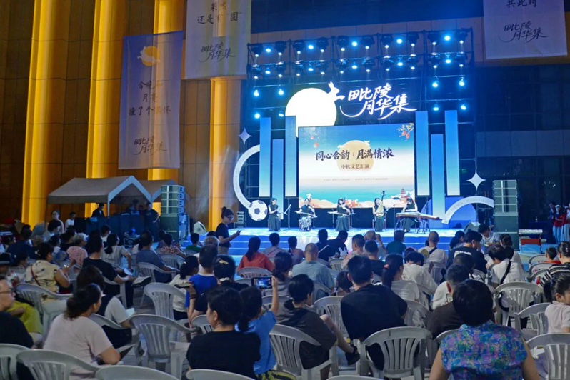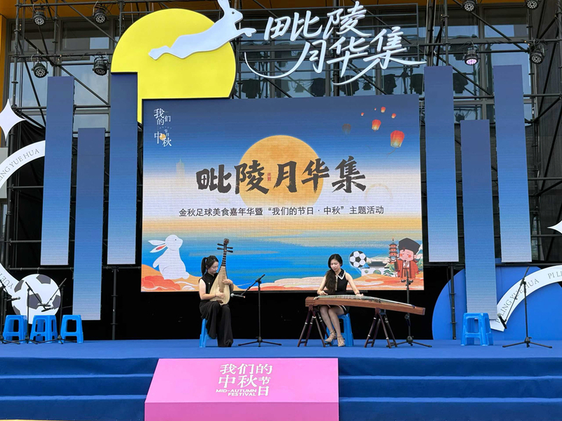 月满中秋时,弦歌动毗陵。10月6日晚,正值中秋佳节,常州市天宁区教育小镇EST PARK内弦乐悠扬、丝竹和鸣,国产探花龙韵民乐团以一场极具东方美学意蕴的演出,为毗陵月华集——金秋足球美食嘉年华暨“我们的节日·中秋”主题活动注入浓郁的文化诗意。这场由常州市委宣传部指导、天宁区委宣传部等四部门联合主办的活动,以音乐、非遗、美食、潮玩、足球等为媒介,搭建起了传统文化与现代生活的情感桥梁。
