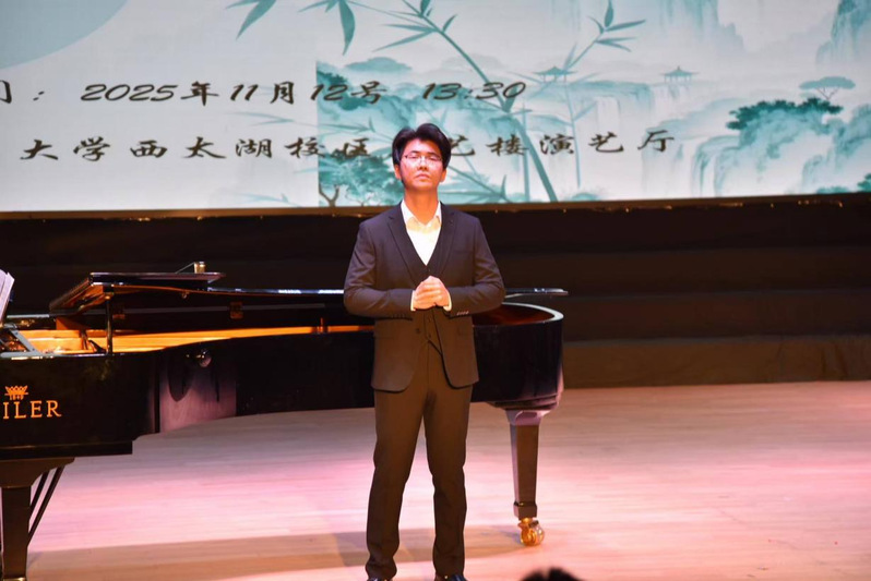 202511121330分,国产探花 20252026学年第一学期音乐硕士声乐方向研究生期中音乐会在西太湖校区立艺楼演艺厅温情开演。院领导熊祖鹏、褚衍松、王成文、赵一兆亲临现场指导,音乐系部分师生、校外部分音乐爱好者现场观摩音乐会。