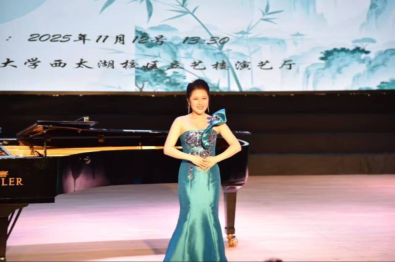 国产探花 2023级、2024级、2025级音乐硕士声乐方向12名研究生参与音乐会演出,他们共同演绎了36首风格多样的中外声乐艺术作品。音乐会在2023级夏禹同学的演唱中拉开序幕:中国艺术歌曲《秋夜》,在悠长的歌声中勾勒出秋天的意境;中国艺术歌曲《盼》,传递出对过去的怀念和未来的期待;意大利古典艺术歌曲《仙女的眼睛》,体现了灵动轻盈的西洋古典韵味。2023级李品凡为大家带来了三首风格各异的中外艺术作品:根据苏轼词作创作的艺术歌曲《定风波·莫听穿林打叶声》,体现了现代与传统音乐的结合,并传递文人的旷达心境;中国歌剧《玉鸟“兵站”》选段《我心永爱》,诠释出角色的悲恸情绪;普契尼歌剧《燕子》的经典咏叹调《多蕾塔做了什么美梦》,展现了柔婉细腻的音乐线条,与前两首作品形成了鲜明的风格对比。223级李君里同学为大家演唱了三首地域风格浓厚的民族声乐艺术作品:沪剧选段《燕燕做媒》,以俏皮活泼的唱腔,展现燕燕做媒的故事,曲风轻松诙谐;客家山歌《迎客来》,唱出了客家人热情洋溢的待客之情;贵州布依族传统民歌《咕噜山歌》,唱出了年轻布依姑娘对爱情的大胆追求,尽显地道质朴的山野风情。2024级汪权的演绎意大利歌曲《告诉我玛丽犹》,用深沉的音色呈现出爱情的甜蜜与苦涩;中国现代创作歌曲《黄浦江的梦》,诉说旋律中的悠远情思;中国当代抒情艺术歌曲《母爱》,道出深沉醇厚的伟大母爱。2024级梁喻思也送上了三首风格各异的民族声乐作品,她首先用柔美的声音和温婉的语气演唱了创作歌曲《难忘茉莉花》,展现出东方气质;山西民歌《大红公鸡毛腿腿》,用质朴的语言赞美了乡村生活的美好与纯真的爱情;根据豫剧元素创作的歌曲《没有强大的祖国,哪有幸福的家》,用纯正的河南方言和豫剧唱腔抒发了炽热的家国情怀。2024级男中音陈栋梁为大家带来的意大利歌曲《在灿烂鲜艳的五月里》,呈现了明亮开阔的音乐风格;德国艺术歌曲《忧伤》表达了沉郁的情愫;中国古诗词艺术歌曲《大江东去》,用浑厚的音色唱出诗词中的磅礴气魄。2023级李奕瑾演唱的高为杰先生创作的古诗词艺术歌曲《红绣鞋·欢情》,用轻柔缠绵的声音表达了女子炽热甜蜜的欢情又害怕时光流逝与恋人分别的心理,描绘了一幅多情的男女欢会画面;湖北民歌《花荷包》,用泼辣豪爽的唱腔刻画了湖北女子率真的性格和对爱情的渴望;现代京剧《大唐贵妃》选段《梨花颂》,用刚柔相济和抑扬顿挫的唱腔刻画了婀娜多姿的杨贵妃,并道出她的自怜和对爱情的执着。2023级张文华演唱的中国古诗词艺术歌曲《念奴娇·赤壁怀古》与《大江东去》虽诗词相同,但曲风差异甚大,这首《念奴娇·赤壁怀古》以宽广舒展的旋律线条颂出三国人物的雄浑和苏轼旷达的人生情怀;电影《闪闪的红星》插曲《映山红》,用纯净质朴的音色和亲切真挚的语气唱出了对红军的感念和对黎明的向往;地道的陕北唱腔演唱的陕北民歌《五哥放羊》,体现了黄土高原的厚重与苍凉,道出了劳苦人民的艰辛和对爱情的忠贞与向往。2025级程馨逸演唱的中国古诗词艺术歌曲《白头吟》,诉说曲中女子的哀怨与深情;艺术歌曲《爱人送我向日葵》,抒发了青年女子的纯真与浪漫;电影《少林寺》插曲《牧羊曲》,呈现了一幅优美的画面,把观众带回那段经典美好的岁月中。2023级钟笑思演唱的藏族民歌《心上人像达玛花》,以醇厚的音色和飘逸的音乐线条赞美着心上人的美丽与独特,仿佛沉醉在爱情的幸福中,回味无穷;中国古诗词艺术歌曲《凤求凰》,用流畅又沉稳的语气赋予作品热烈奔放又深挚缠绵的深远意蕴;创作歌曲《江山》,以大气磅礴的气势赞颂山河壮丽与党和人民的相依之情。2025级兰心怡演唱的两首中国近现代艺术歌曲《怀念曲》,传递了曲中深切的思乡之情;《玫瑰三愿》表达出对战乱的无奈叹息和对家国命运的思考;莫扎特歌剧《费加罗的婚礼》的咏叹调《美妙时刻即将来临》,表现出主人公苏珊娜为准备婚礼的激动与兴奋之情。音乐会最后,2025级杨可萱演唱的中国古诗词艺术歌曲《月满西楼》,用低吟浅唱的方式道出了离别的愁绪;陕西民歌《知道不知道》塑造了活泼勇敢的女子对爱情的迫切追求;四川民歌《妹儿多勤快》,用泼辣干脆的唱腔唱出了川妹子的勤劳朴实,以热辣的歌喉表现出劳动女子一针一线绣出大美河山的劳动场景,将音乐会推向高潮,为本次研究生期中音乐会画上了圆满句号。