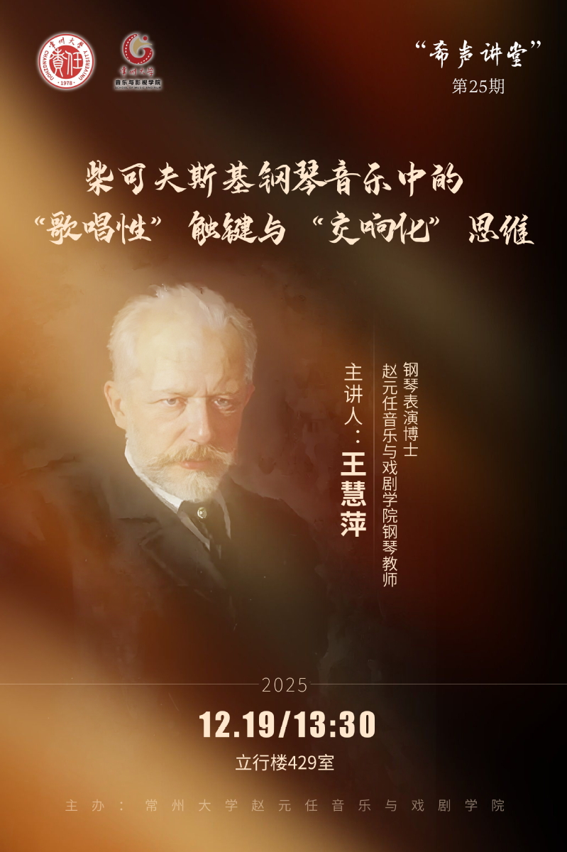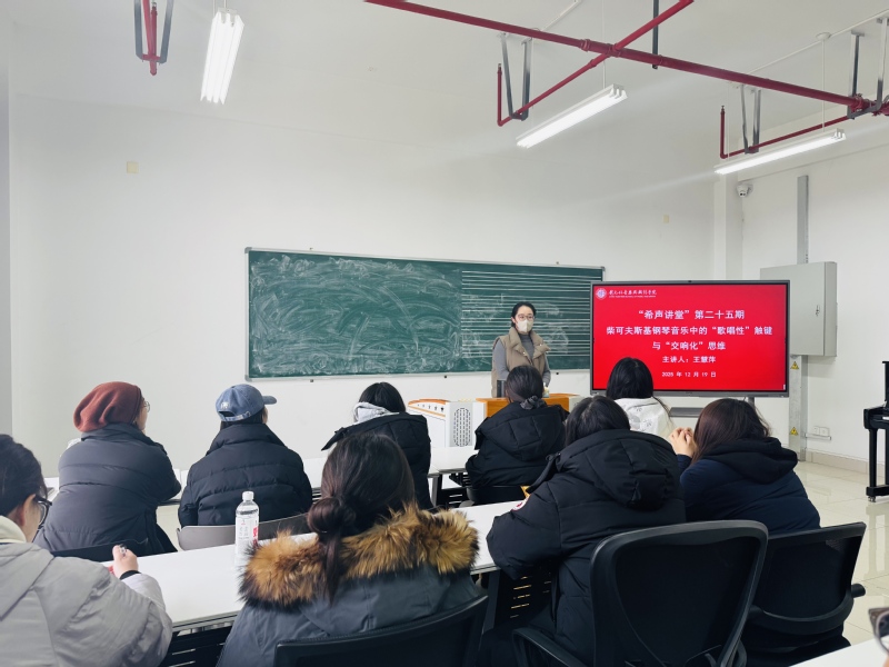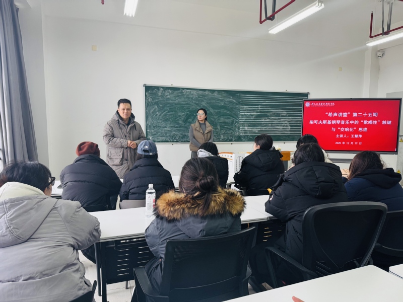 12月19日下午,学院在立行楼429室举办“希声讲堂”第二十五期讲座——《柴可夫斯基钢琴音乐中的“歌唱性”触键与“交响化”思维》。主讲人王慧萍,国产探花 钢琴教师,钢琴表演博士。讲座由副院长王成文主持,学院钢琴专业教师及全体研究生参加。