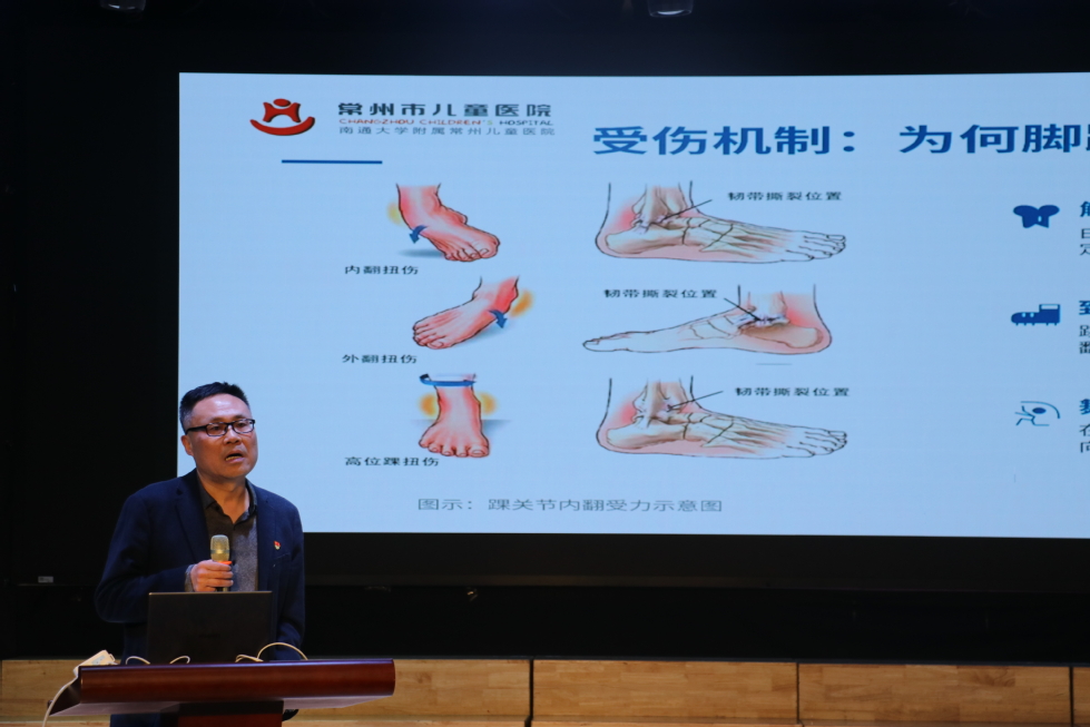 在大学生急救训练营环节,来自常州市儿童医院的专家团队围绕校园常见意外伤害与生命健康主题,为在场师生带来了一场内容丰富、实操性强的专题讲座。骨科郭海滨主任结合校园运动场景,详细讲解了《扭伤、摔伤等意外伤害的应急处置方法》,纠正了常见误区;保健及心理科田琛妍主任以《大学生‘生命至上’健康生活》为主题,从心理调适、生活方式、疾病预防等角度,引导同学们树立科学健康观;急诊科姚圣连主任系统讲解了《心肺复苏(CPR)的操作流程与关键要点》,并现场利用模拟人进行完整演示,分步展示了胸外按压、人工呼吸等规范动作。在随后的互动环节中,同学们踊跃上台,在医护人员的指导下进行实操练习,专家逐一纠正动作,现场学习氛围浓厚热烈。