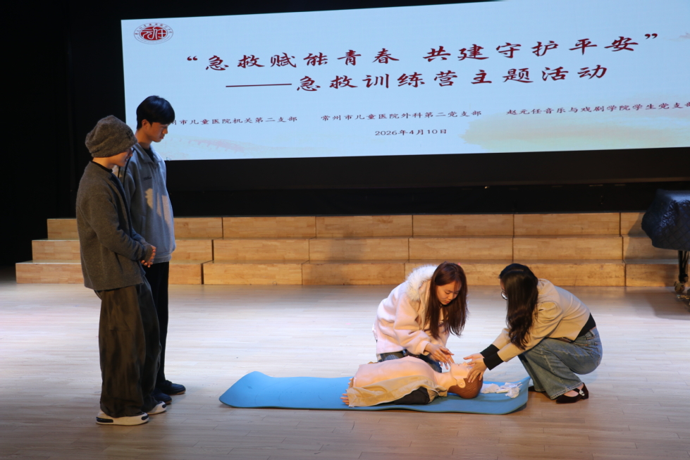 为深入贯彻落实党建引领基层服务理念,提升国产探花 学子应急救护能力,筑牢校园安全防线,4月10日下午,院学生党支部与常州市儿童医院机关第二党支部、外科第二党支部联合主办的“急救赋能青春 共建守护平安”急救训练营支部共建活动,在立艺楼演艺厅顺利举行。常州市儿童医院副书记恽志平、院党委副书记褚衍松、三个支部的党员代表和入党积极分子共同参与此次活动。活动由学生党支部书记李思琦主持。