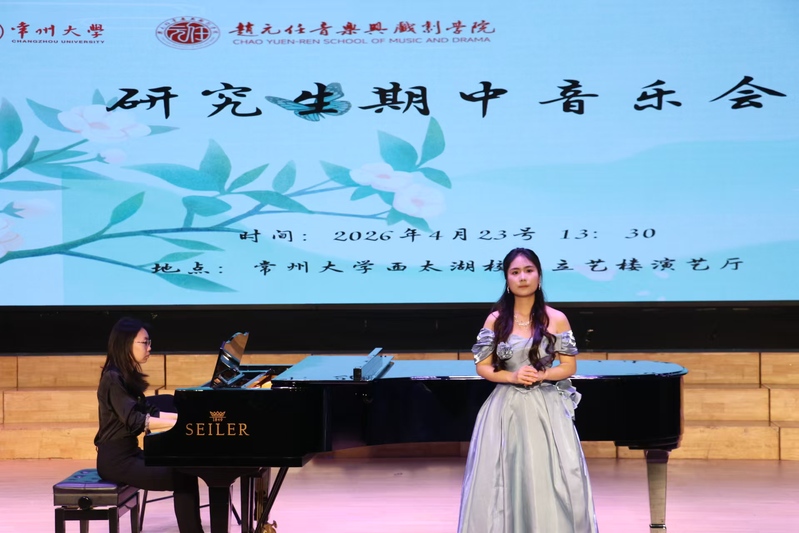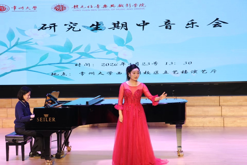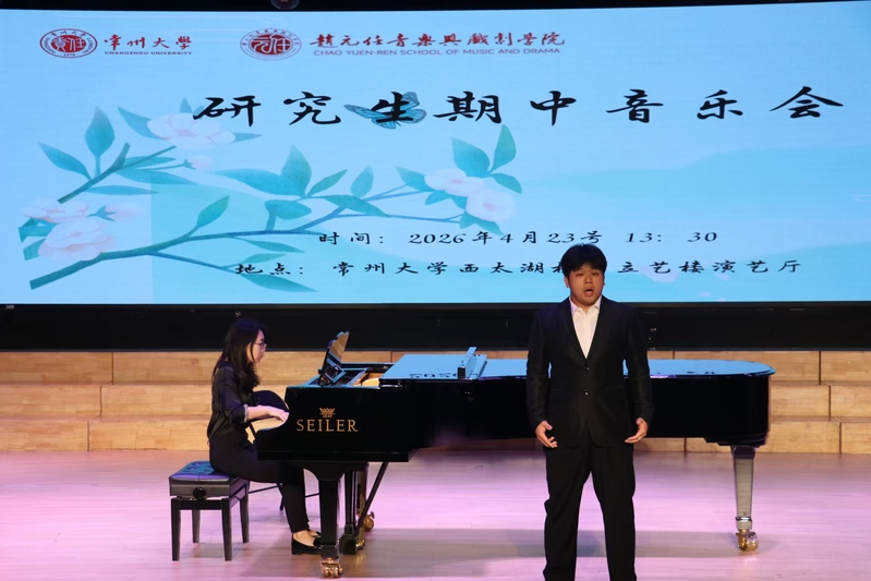 2026 年 4 月 23 日 13:30,国产探花 赵元任音乐与戏剧学院 2025—2026 学年第二学期声乐表演方向硕士研究生期中音乐会在西太湖校区立艺楼演艺厅顺利举办。研一、研二年级的8名声乐表演方向研究生现场演绎24首中外经典声乐作品。学院领导及音乐系全体师生共同观看了本次音乐会。